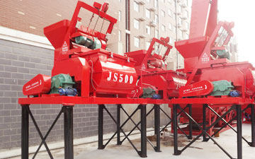 • JS500強制式混凝土攪拌機一般用于小型的HZS25型攪拌站。兩根臥式攪拌軸,數(shù)個攪拌臂及多個攪拌葉片。強制式的攪拌原理能大幅度地提高拌簡的容積利用系數(shù)和攪拌機的生產(chǎn)率,攪拌質(zhì)量均勻。